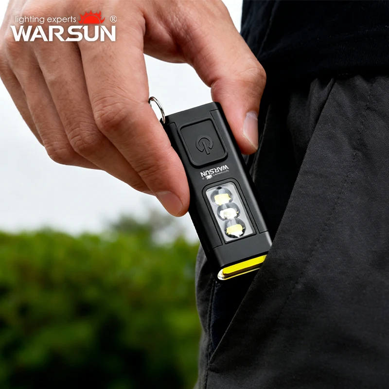 Torcia LED Tascabile WARSUN T5 Mini, 18g Ultraleggera, Ricaricabile, 300LM, con Luce UV e Portachiavi per EDC, Escursionismo e Campeggio