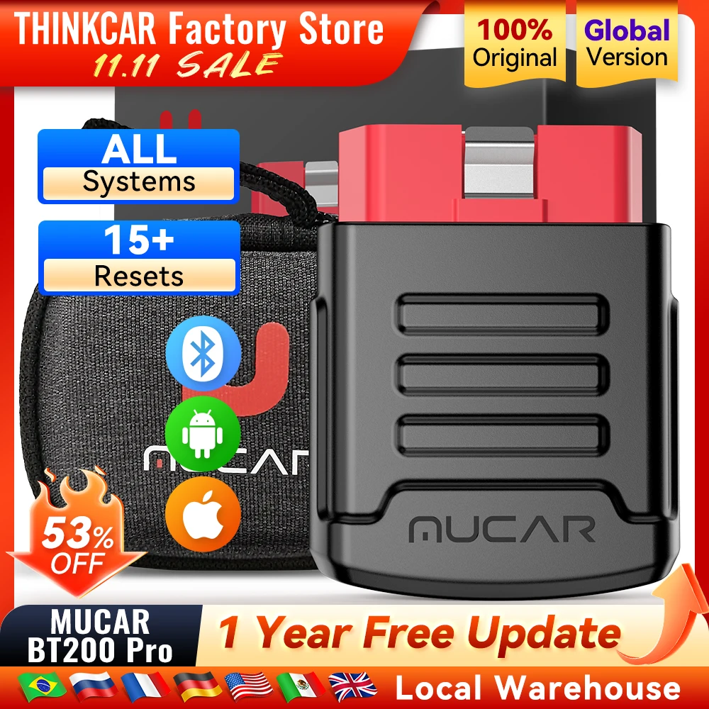 MUCAR BT200/BT200 PRO OBD2 Strumenti diagnostici per scanner per auto 15 Funzione di ripristino Olio SAS Sistema completo Motore SRS TCM Lettore di codici automatici