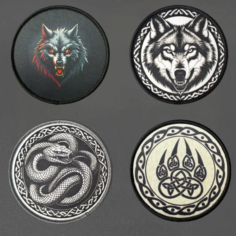 Toppa con stampa testa di lupo Gilet tattico serpente Gancio e anello Distintivo morale Zaino Adesivi decorativi Toppe da braccio per abbigliamento