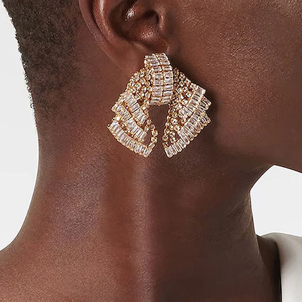 1 paio di orecchini da donna clip per orecchie non forate decorazioni con strass orecchini da sposa antiscivolo festa cocktail banchetto gioielli per orecchie