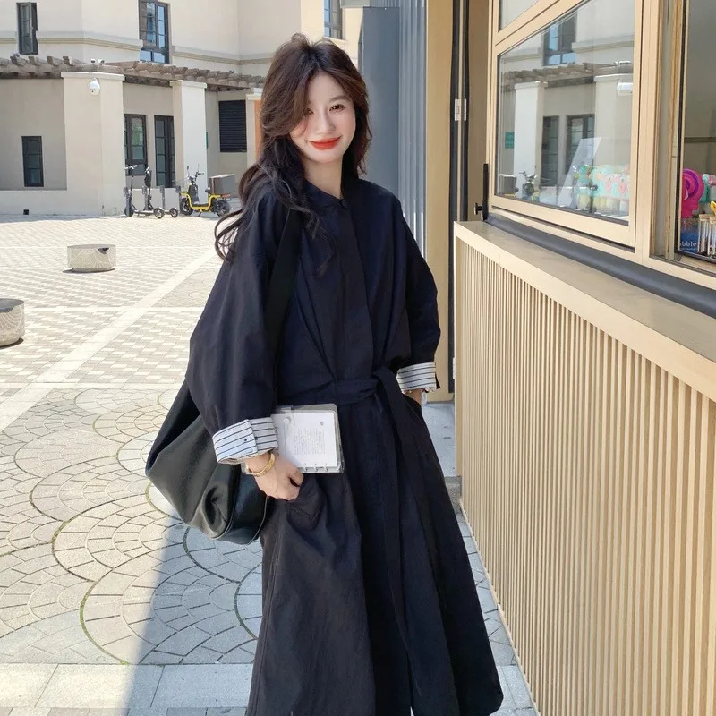 2025 Trench da donna nuovo vintage doppio petto vestibilità ampia elegante colletto alla coreana streetwear cappotto autunno inverno