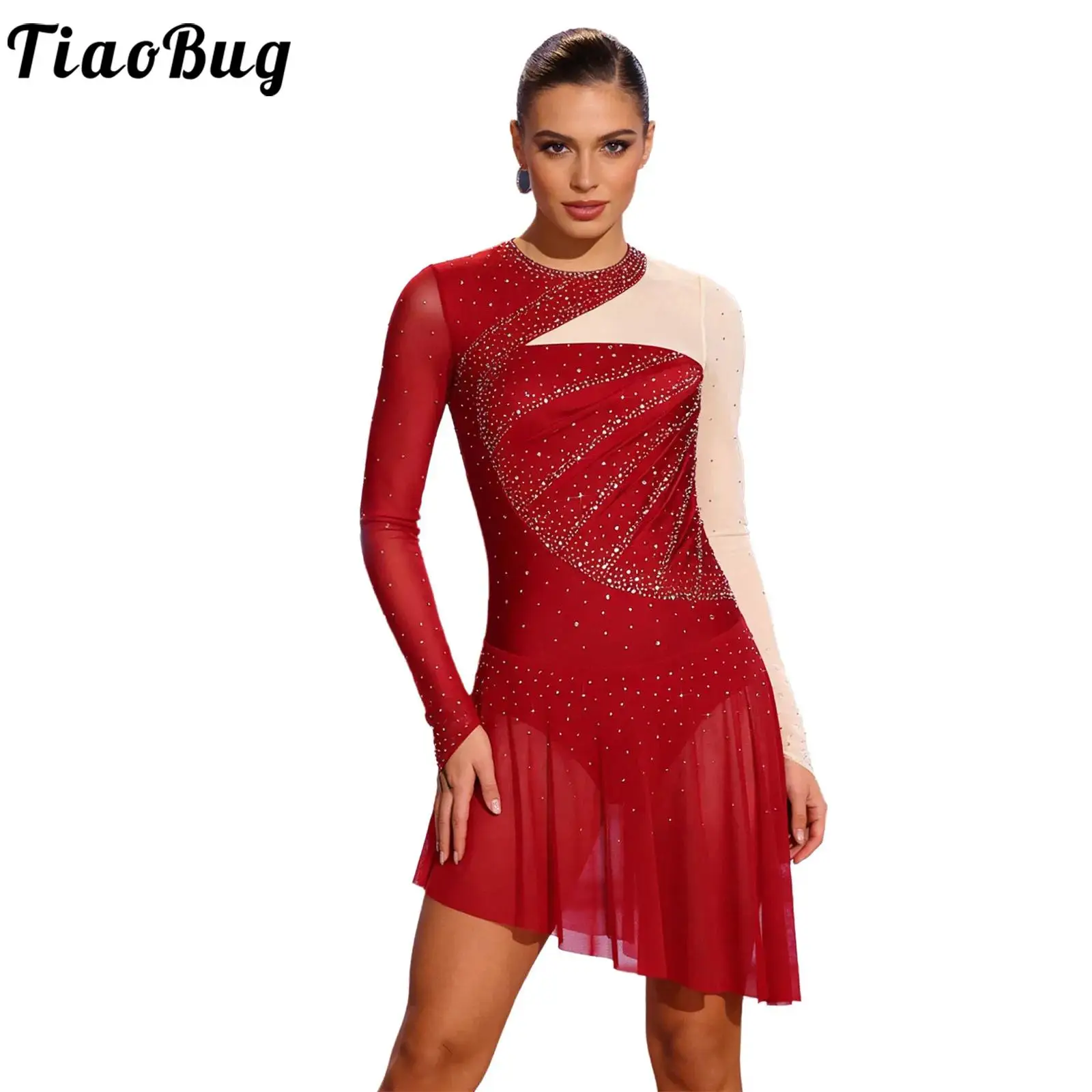 Abito da ballo lirico da donna senza maniche abiti da body in rete trasparente Ballerina Ballet Ballroom Dancing Skating Performance Dancewear