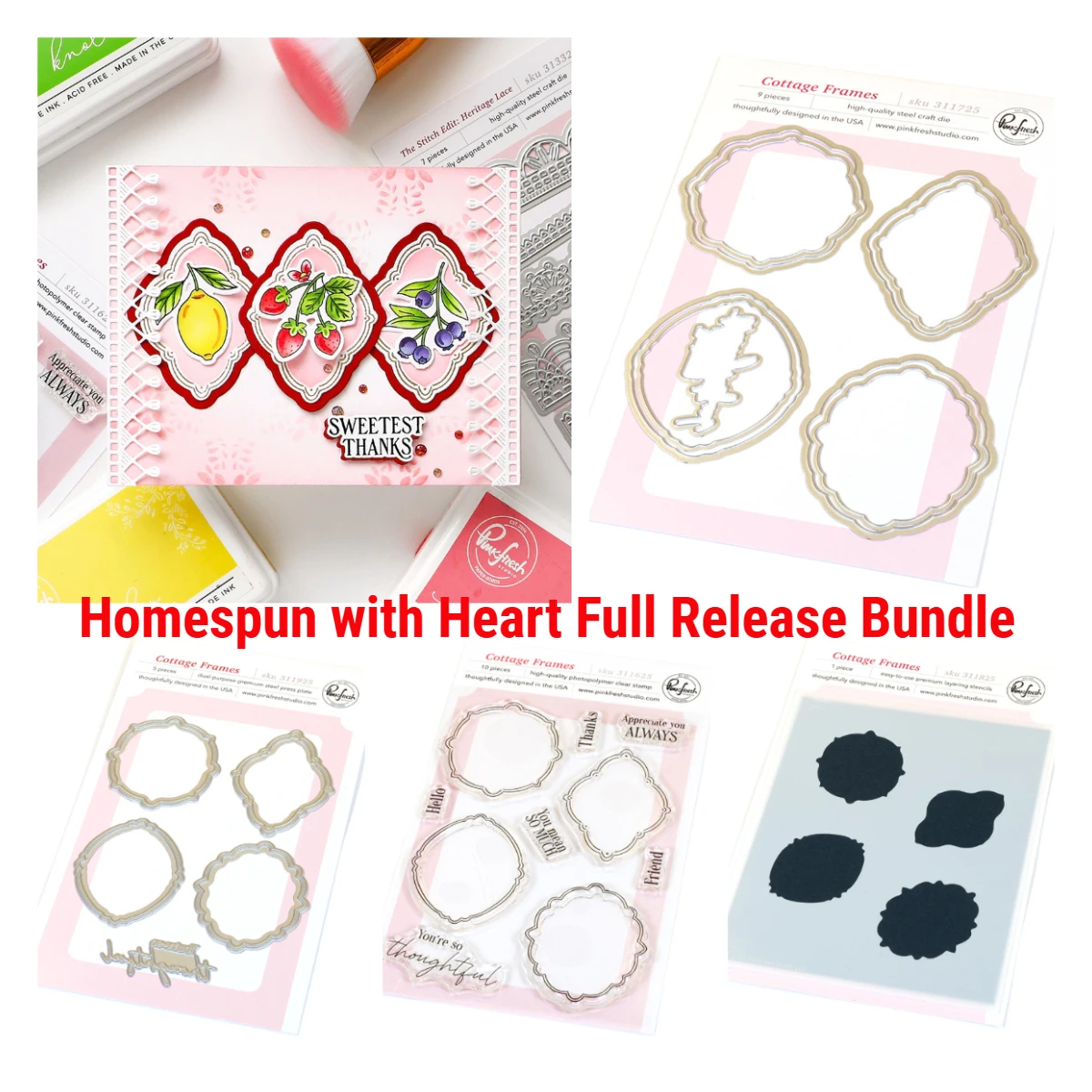 Homespun with Heart Full Release Bundle: Fustelle in Metallo, Timbri, Stencil, Piastre per Stampa a Caldo per Scrapbook, Decorazioni per Diari e Album Fai da Te