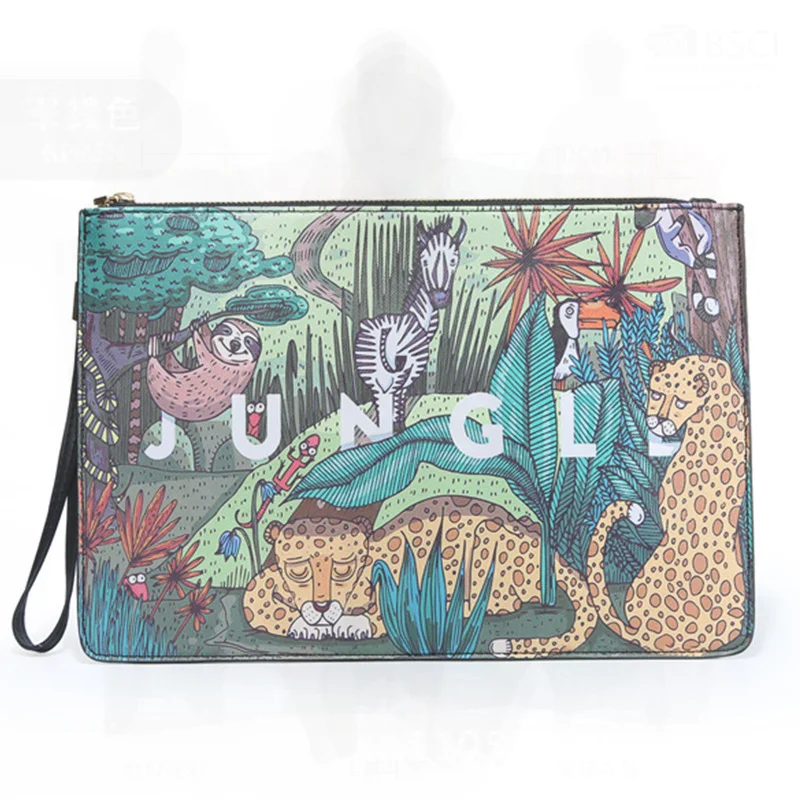 Pochette stampata di grande capacità in stile coreano Portafoglio da uomo casual alla moda di strada Borsa per documenti con busta in pelle PU leggera