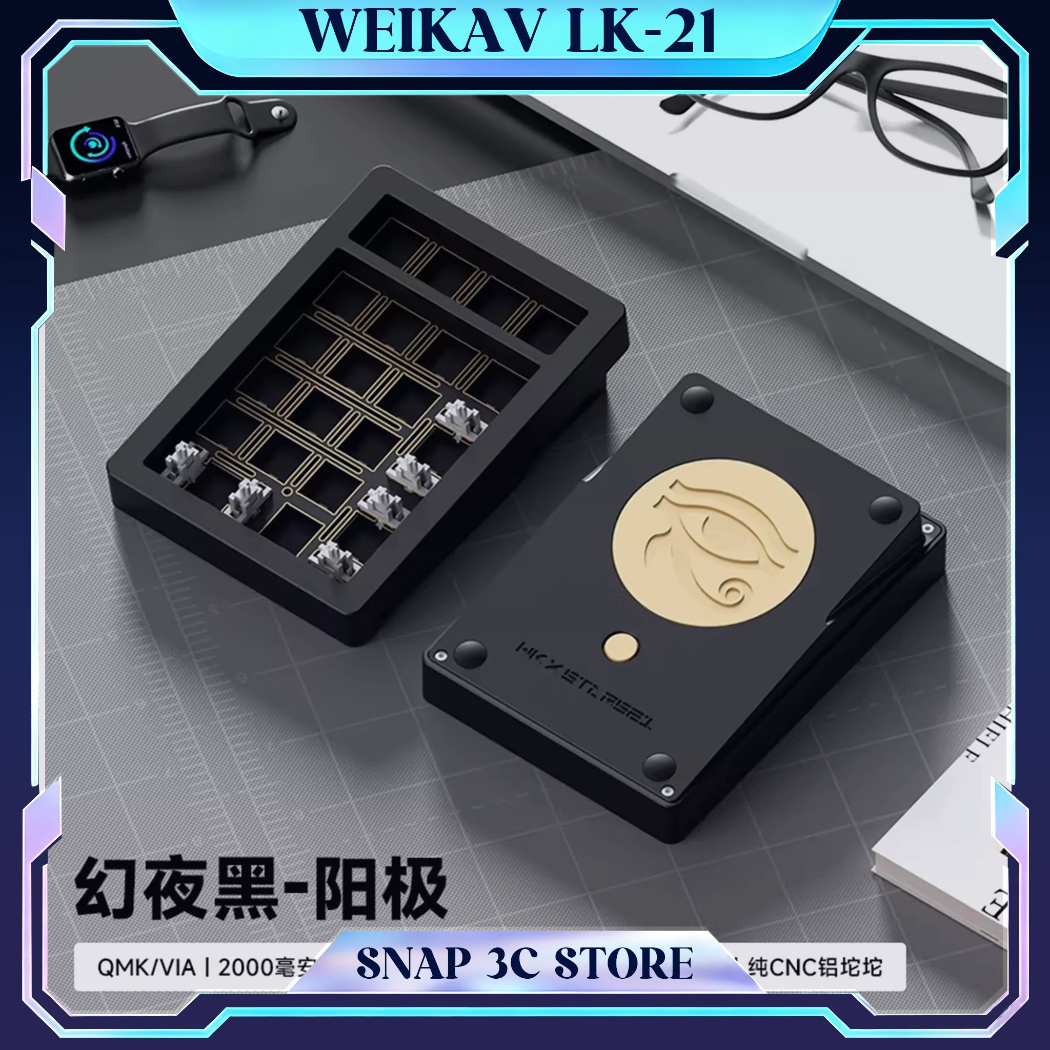WEIKAV STARS21 Tastierino Numerico Wireless in Alluminio, Tri-Modalità Bluetooth, Tastiera Meccanica 21 Tasti Hot Swap RGB per Laptop PC DIY