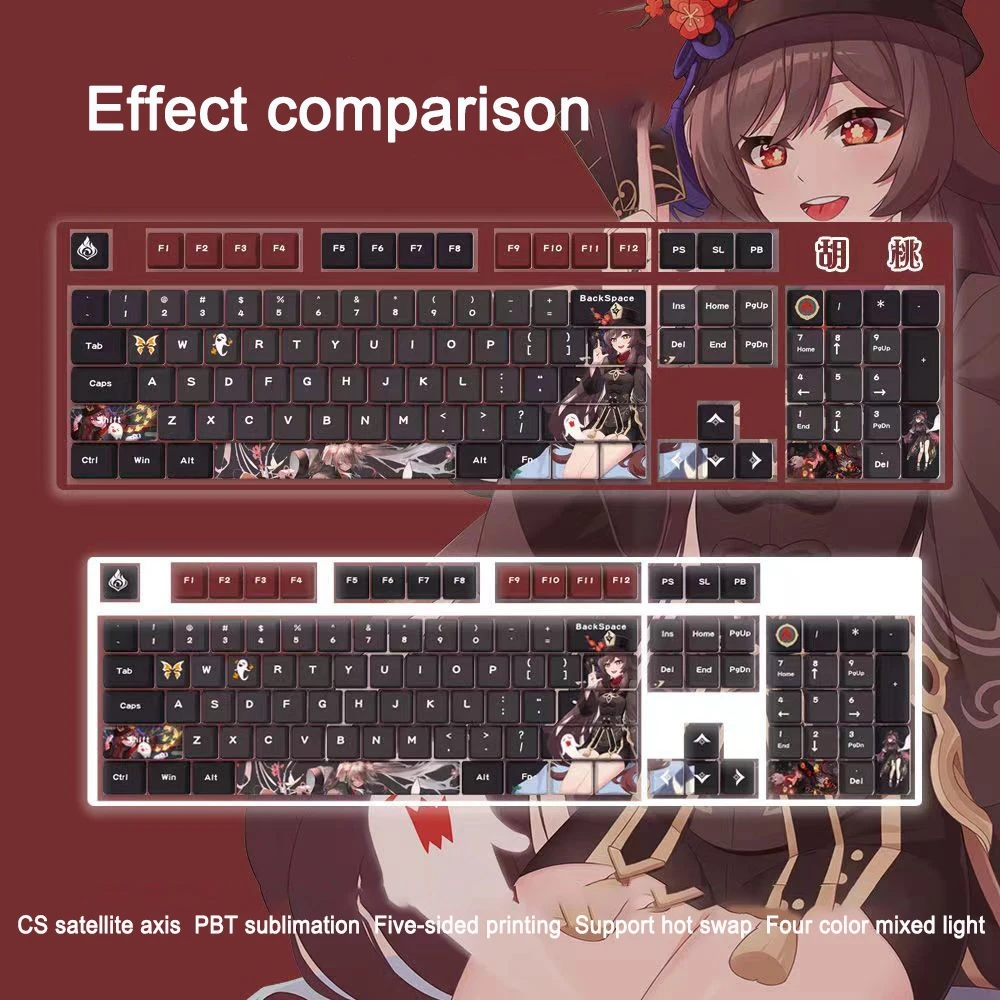 Genshin Impact Tastiera meccanica con sublimazione del colore 104 tasti Copritasti in plastica PBT Giochi Tema fai da te Tastiera con sfondo bianco