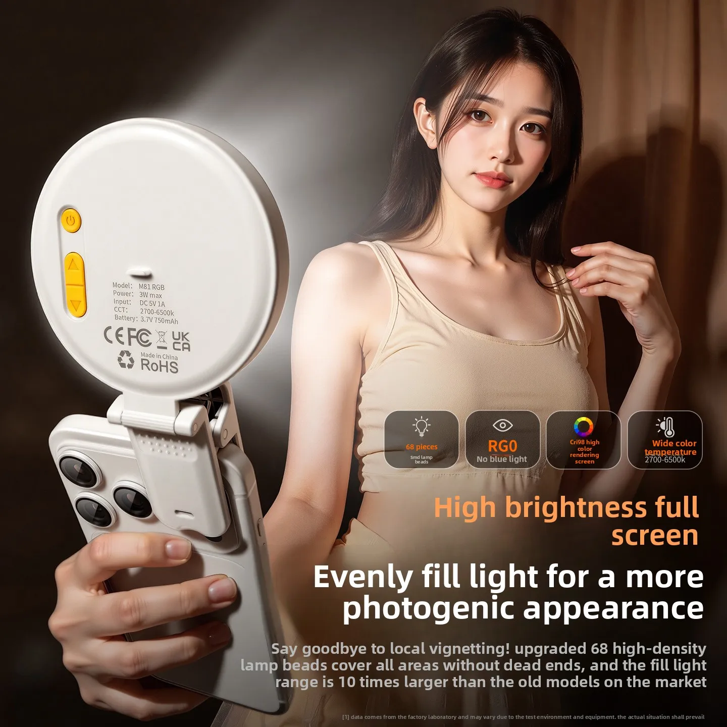 Mini telefono cellulare portatile Luce di riempimento RGB Trasmissione in diretta portatile Video corto Selfie Luce soffusa Luce tascabile di bellezza con clip