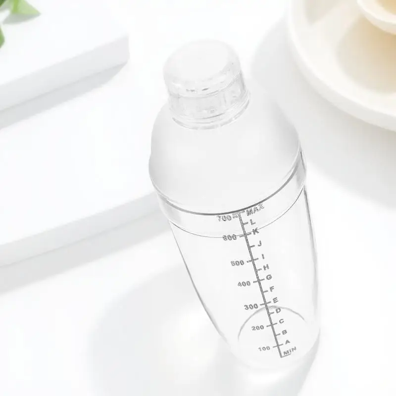 Shaker per Cocktail Trasparente da 700ml, Resistente al Caldo e al Freddo, con Scala Graduata, Antigoccia, per Bar e Tè al Latte