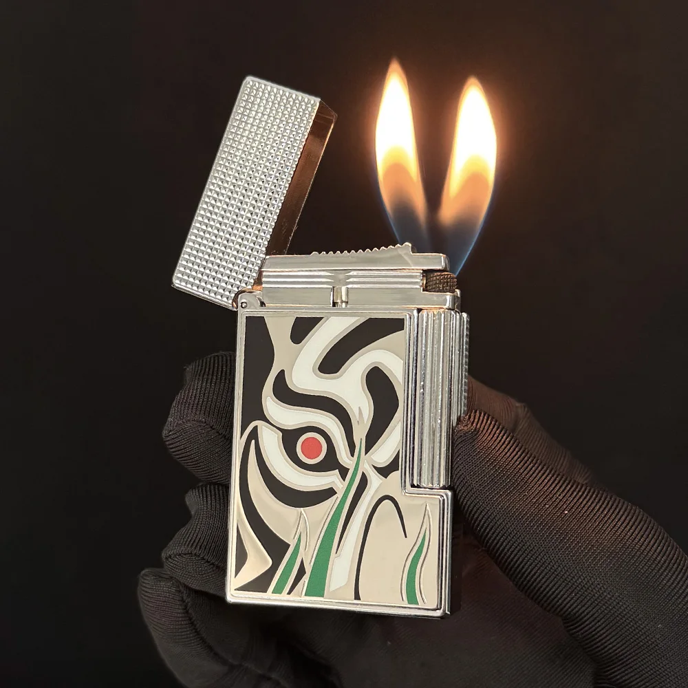 Accendino in metallo butano a gas retrò con tripla fiamma blu di lusso onesta con tagliasigari