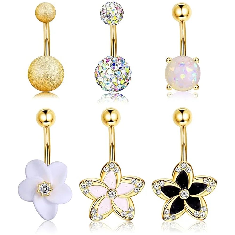 Florideco 1pc Anelli per ombelico in acciaio inossidabile Anelli per pancia chirurgici per donne Ragazze Gioielli per piercing al corpo con fiore in ottone