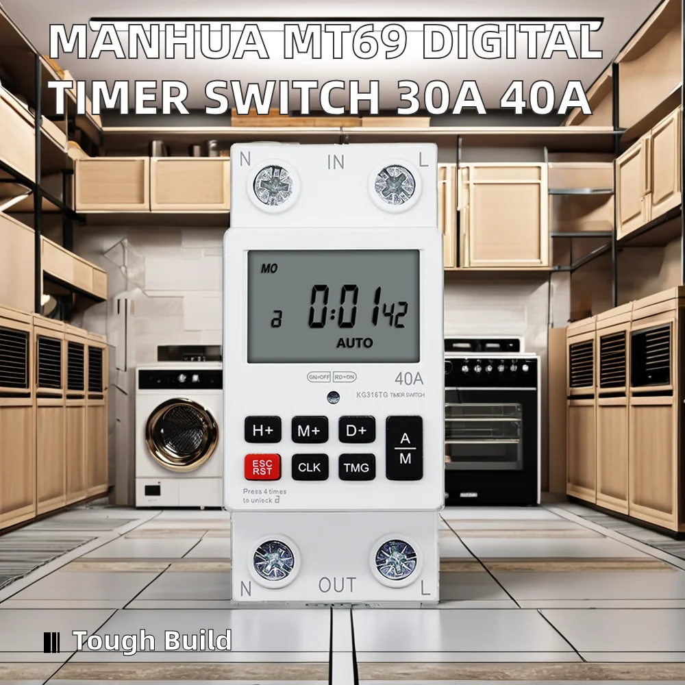 ManHua MT388 100-240VAC 20A lavoro all'aperto impermeabile e a prova di collisione interruttore Timer di montaggio meccanico su guida Din