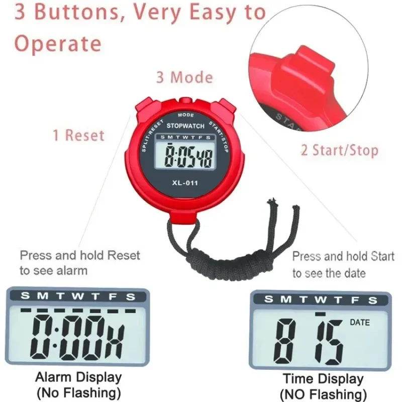 Cronometro digitale Cronografo con cinturino Allarme AM PM 24 ore Orologio LCD portatile Cronometro sportivo da corsa Timer impermeabile