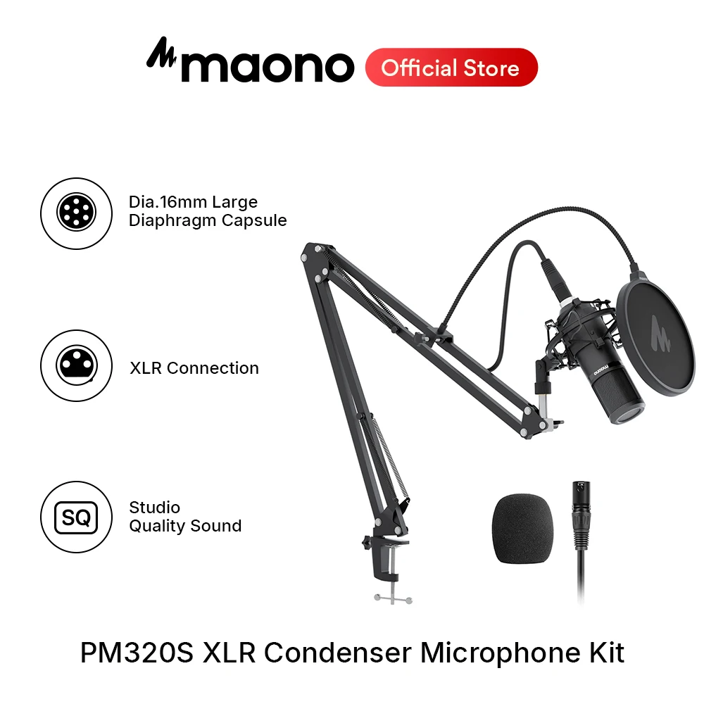 Kit microfono a condensatore XLR Maono PM320S, microfono professionale cardioide per registrazioni vocali in studio, per streaming, voice over e home studio.
