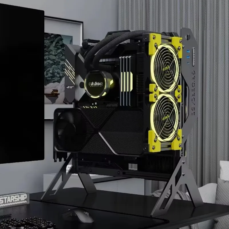 VEDDHA ALPHA V2.0 Custodia industriale retrò - Telaio ATX con flusso d'aria aperto, telaio in alluminio ad alte prestazioni per costruzioni personalizzate