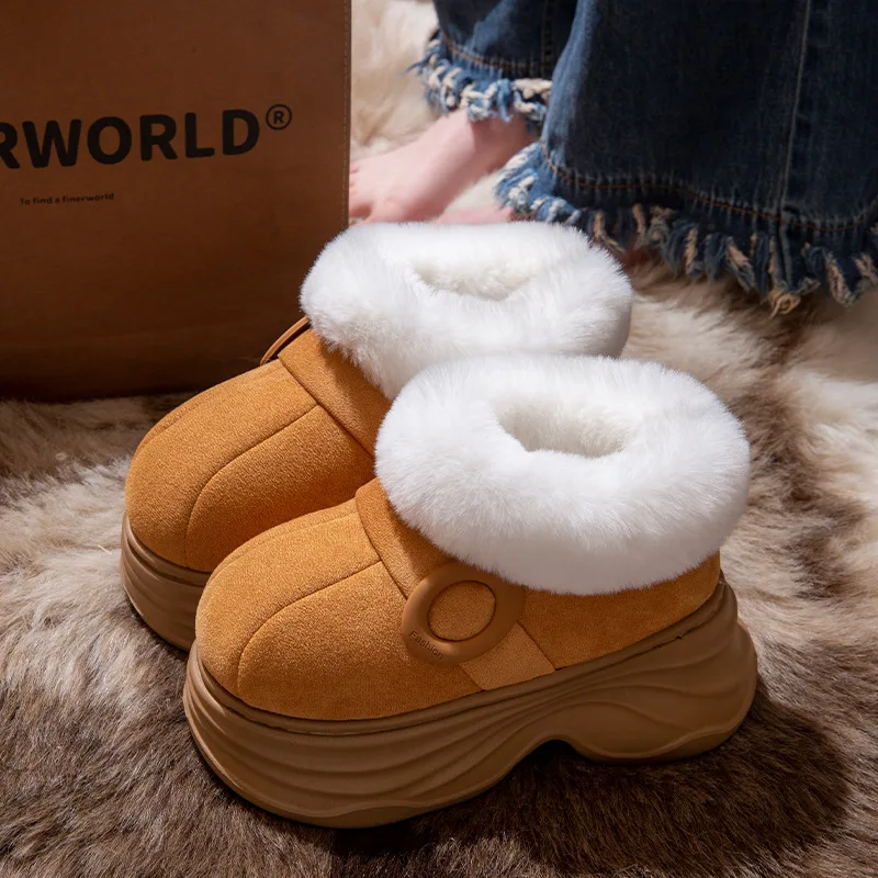 Soffici stivali da neve invernali scarpe di peluche da donna suola spessa slip on stivaletti donna piattaforma pelosa muli zoccoli pantofole da donna