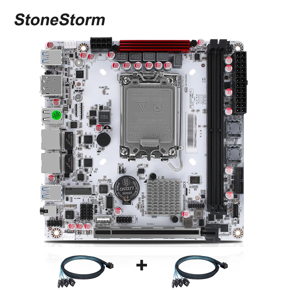 Scheda madre StoneStorm Q670 NAS Mini ITX a 8 alloggiamenti LGA1700 Supporto CPU 12/13/14a generazione, 2 U-DIMM DDR5, 3 M.2 NVMe, SATA3.0, 2,5G vPro