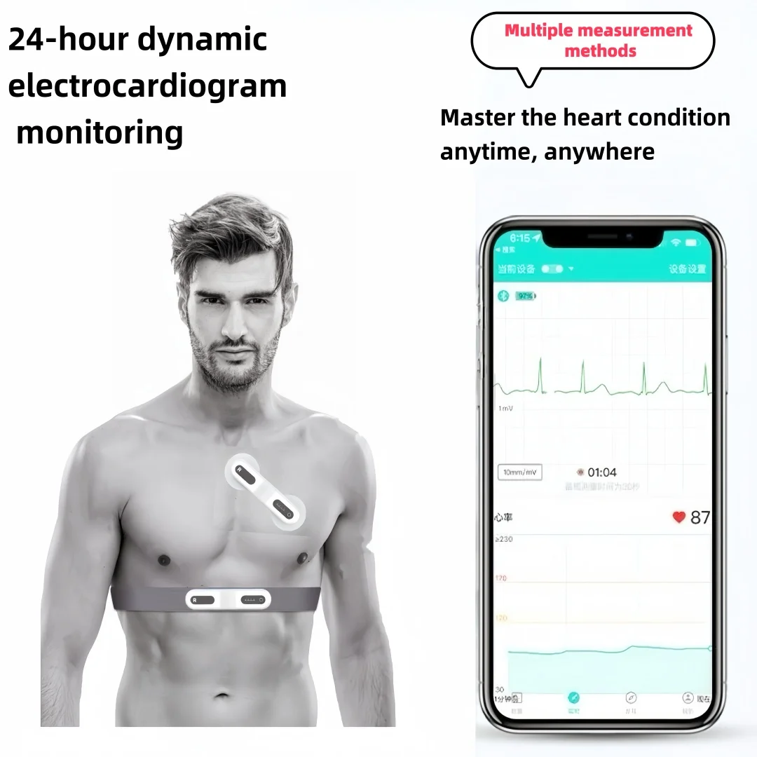 Versione aggiornata, cardiofrequenzimetro ECG Bluetooth, macchina ECG derivata indossabile Analisi AI Monitoraggio in tempo reale Registrazione ECG dinamica