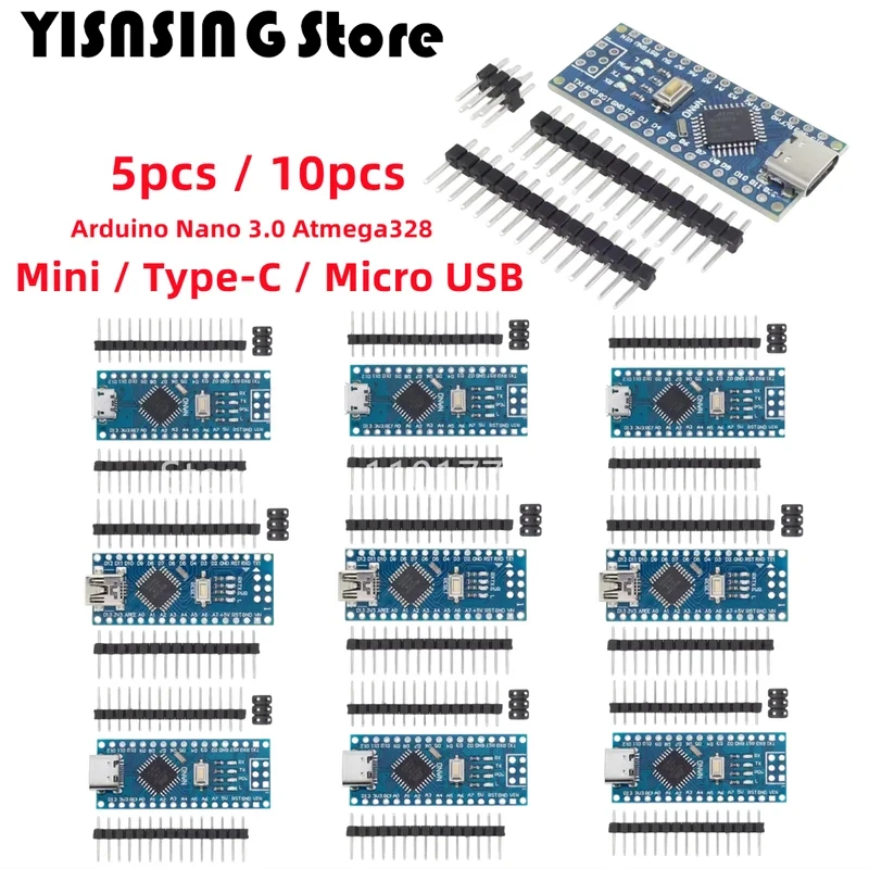 Mini / Type-C / Micro USB Nano 3.0 Con controller Nano compatibile con bootloader per driver USB arduino CH340 16Mhz ATMEGA328P