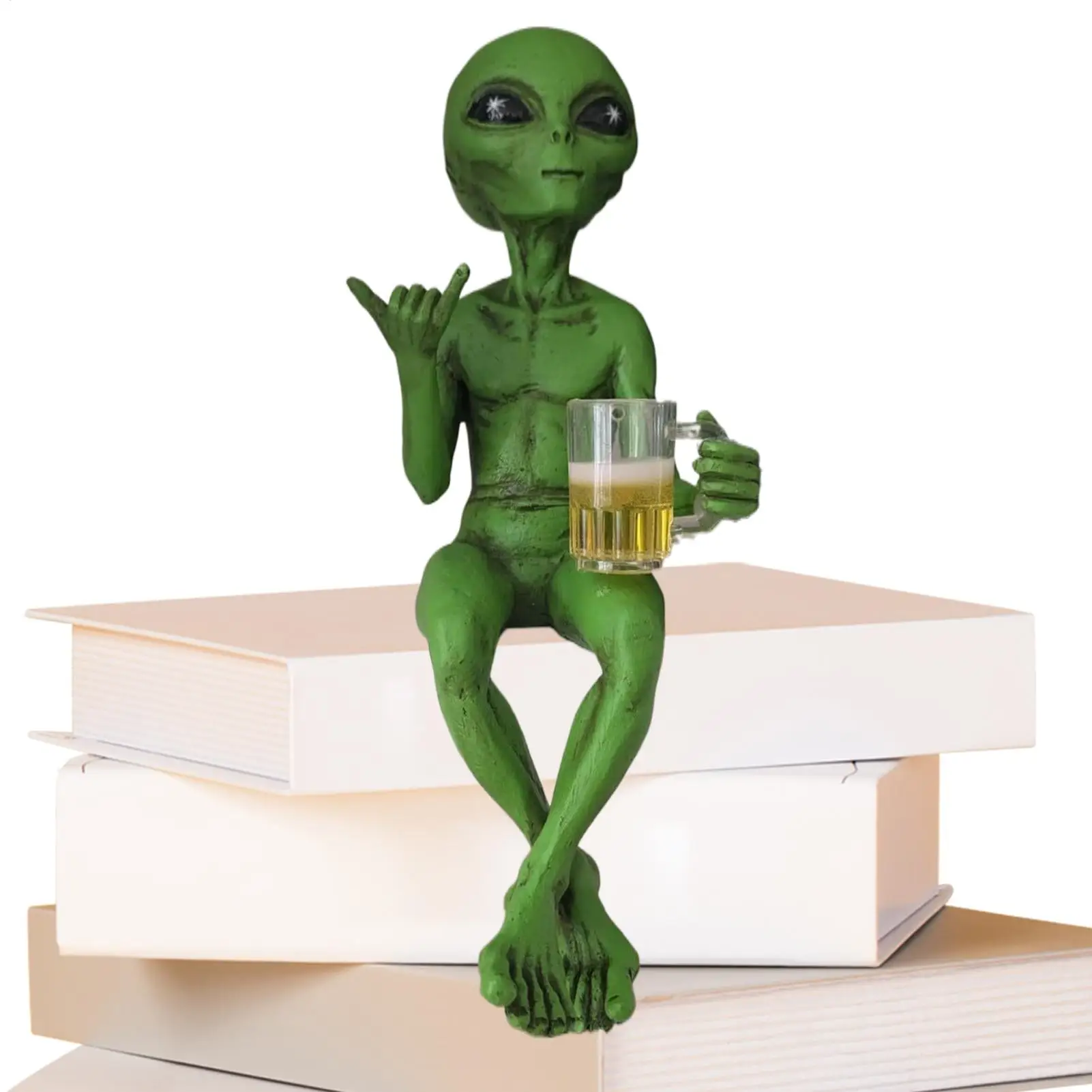 Statua alieno Birra Bere Scultura alieno Resina Novità Oggetti da collezione Divertente Decorazione da tavolo per adulti Scrivania Camera da letto Giardino
