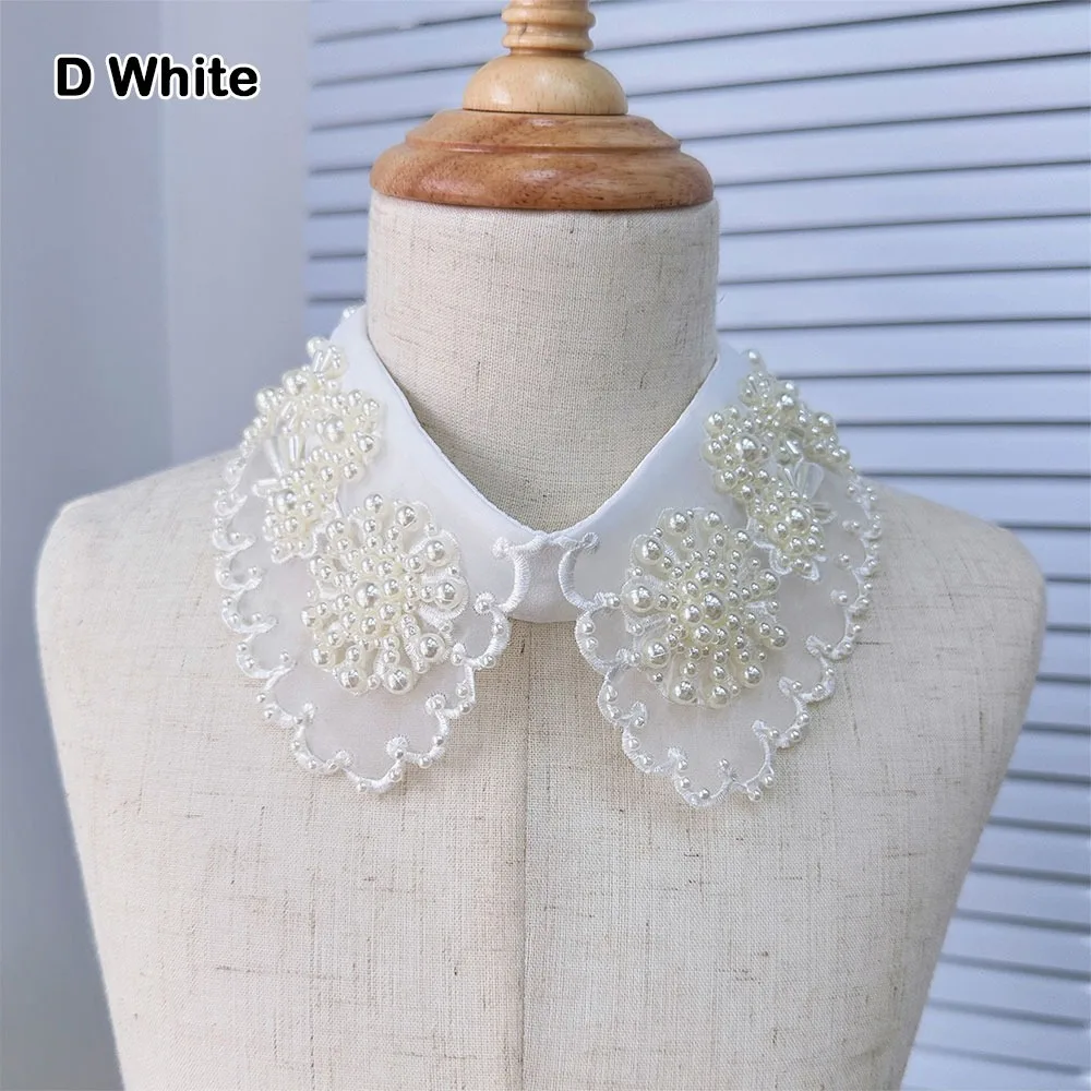 Colletto finto in perle imitazione, sciarpa versatile con lacci, distintivo in pizzo, colletto da donna in pizzo bianco borchiato, accessorio colletto staccabile per camicia
