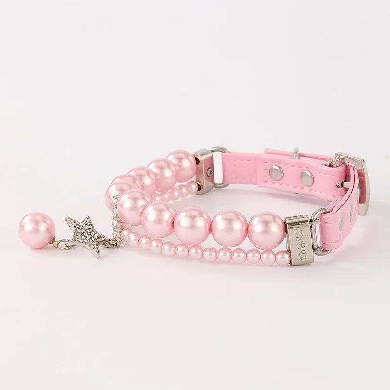 Collare per animali domestici tempestato di diamanti con guinzaglio stile principessa per cani di piccola taglia Gatti Materiale in pelle PU perlato Collana robusta e durevole
