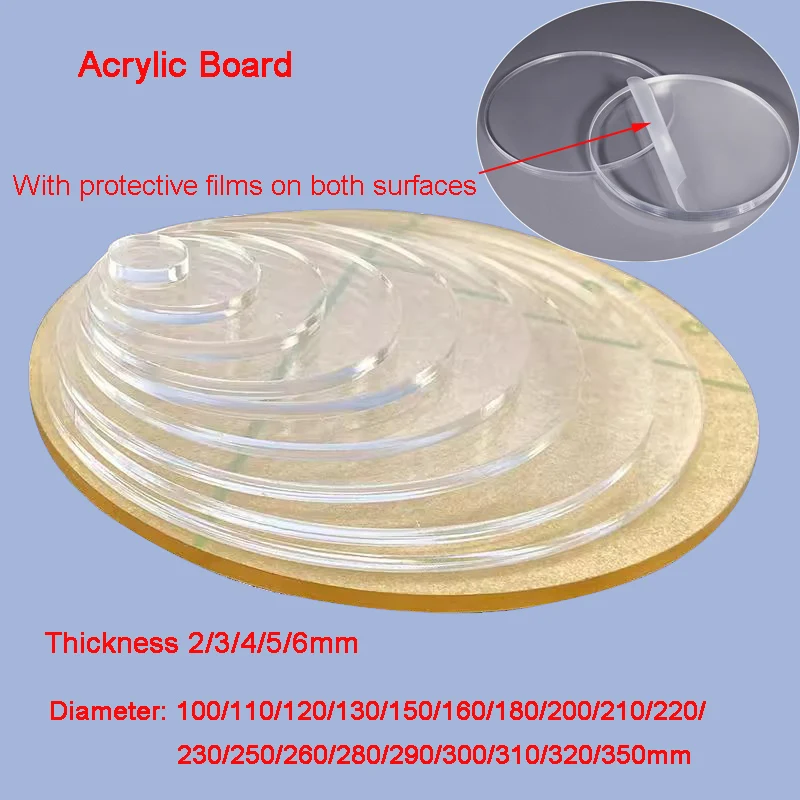 1-5 Pezzi Piastra Rotonda in Acrilico Trasparente, Disco in Plexiglass, Lastra in Vetro per Partizioni, Lavorazione Personalizzata, Spessore 2/3/4/5/6mm