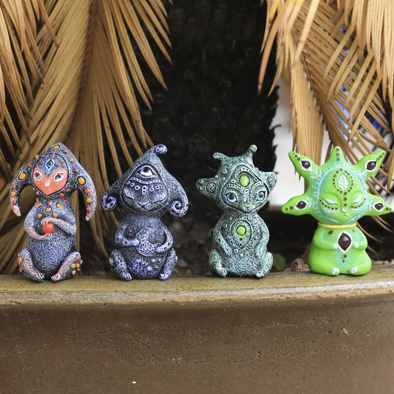 1PC Fantasia Tre Occhi Alieno Elfo Statua In Resina Giardino Esterno Cortile Decorazioni Per La Casa Scultura Mestiere Ornamento Decorazioni Per La Casa