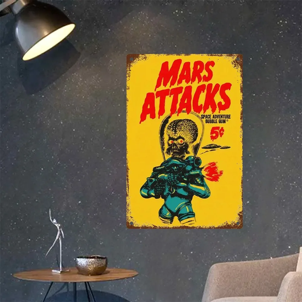 Attacchi di Marte! Targa in metallo vintage per invasione alieno - Decorazione da parete per fumetti di fantascienza impermeabile e antipolvere - Sculture murali personalizzate per