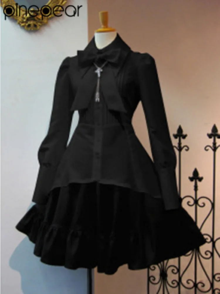 PinePear 2026 Abito Camicia Vintage da Donna con Bottoni e Maniche Lunghe, Vestito Elegante per Feste Formali