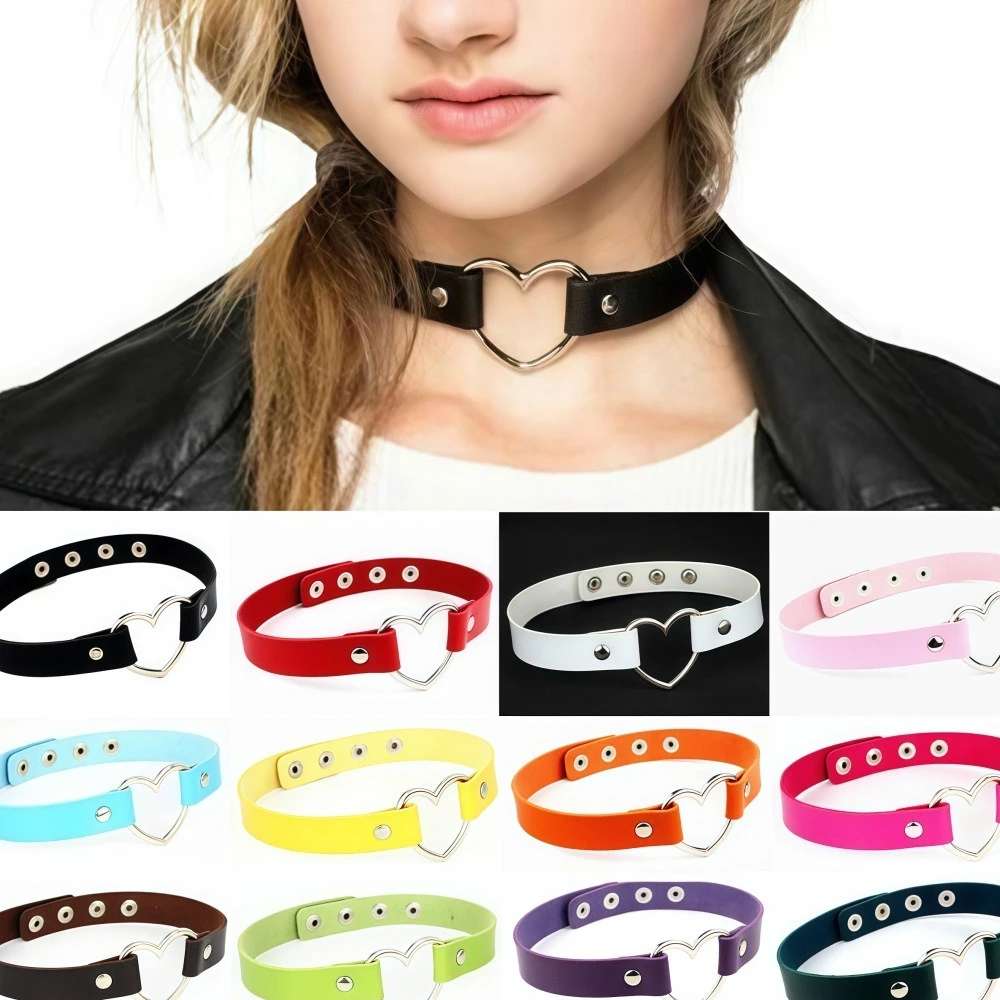 Collana con colletto punk multicolore nero Collana girocollo con chiave a forma di cuore in pelle PU sexy per gioielli da festa cosplay gotici da donna