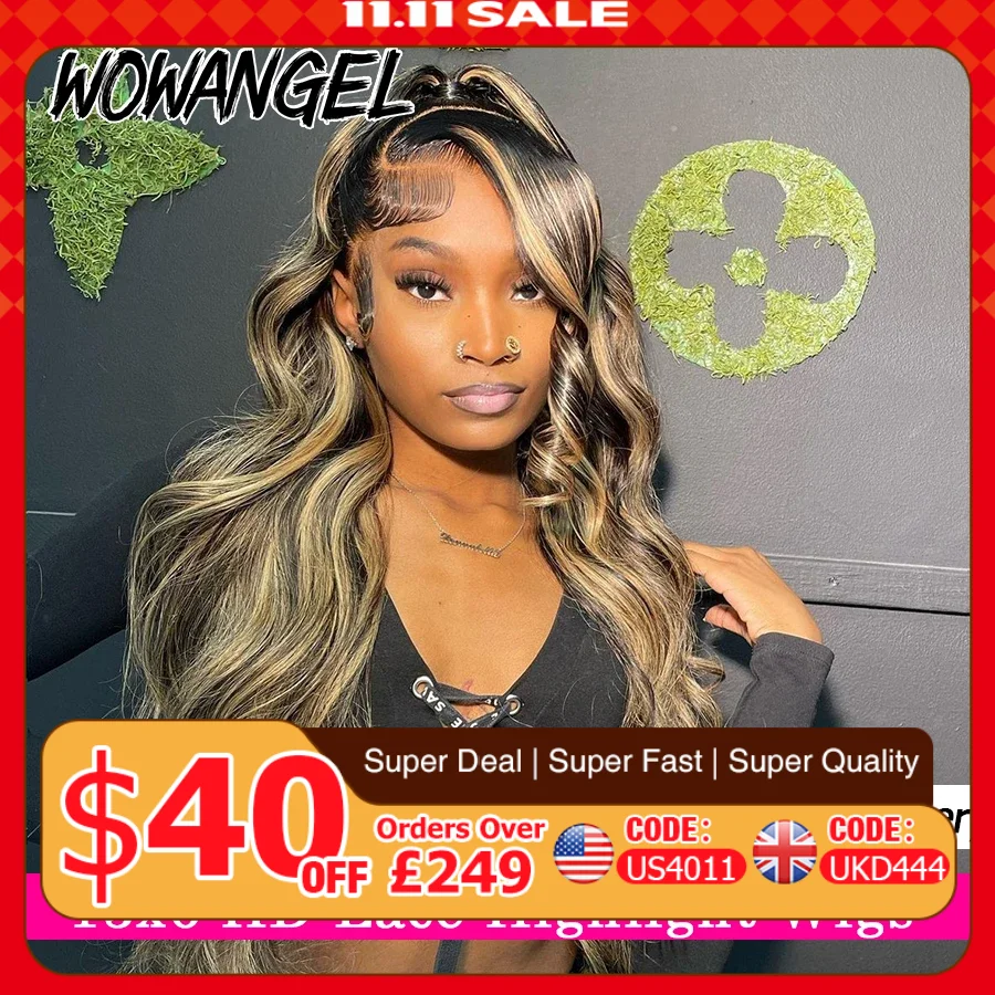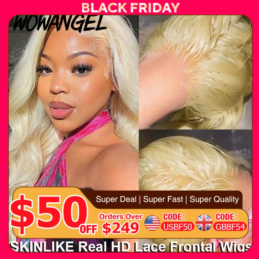 Wow Angel Reale HD Parrucca Frontale Del Merletto 250% 13x4 HD Anteriore Del Merletto Parrucca Dei Capelli Umani 613 Bionda Parrucche Dell'onda Del Corpo HD Parrucca di Chiusura Del Merletto Glueless