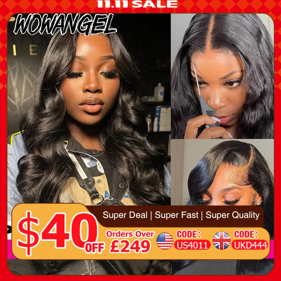 Wow Angel 13x6 HD Parrucca frontale in pizzo pieno Separazione profonda Onda del corpo Parrucche per capelli umani Parrucca in pizzo HD Pelli derrette Cuoio capelluto Linea sottile naturale