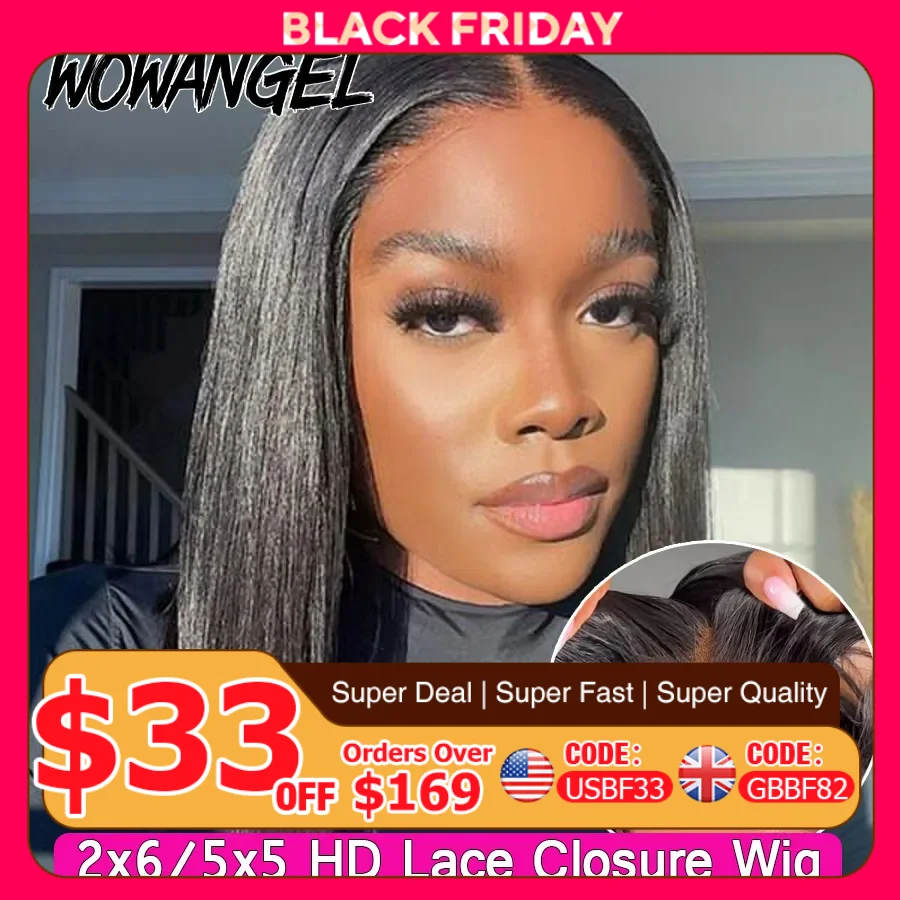 WOWANGEL 2 x6 HD chiusura in pizzo parrucche parte profonda parrucca Glueless pronta da indossare 5x5 HD chiusura in pizzo parrucche per capelli umani parrucche diritte