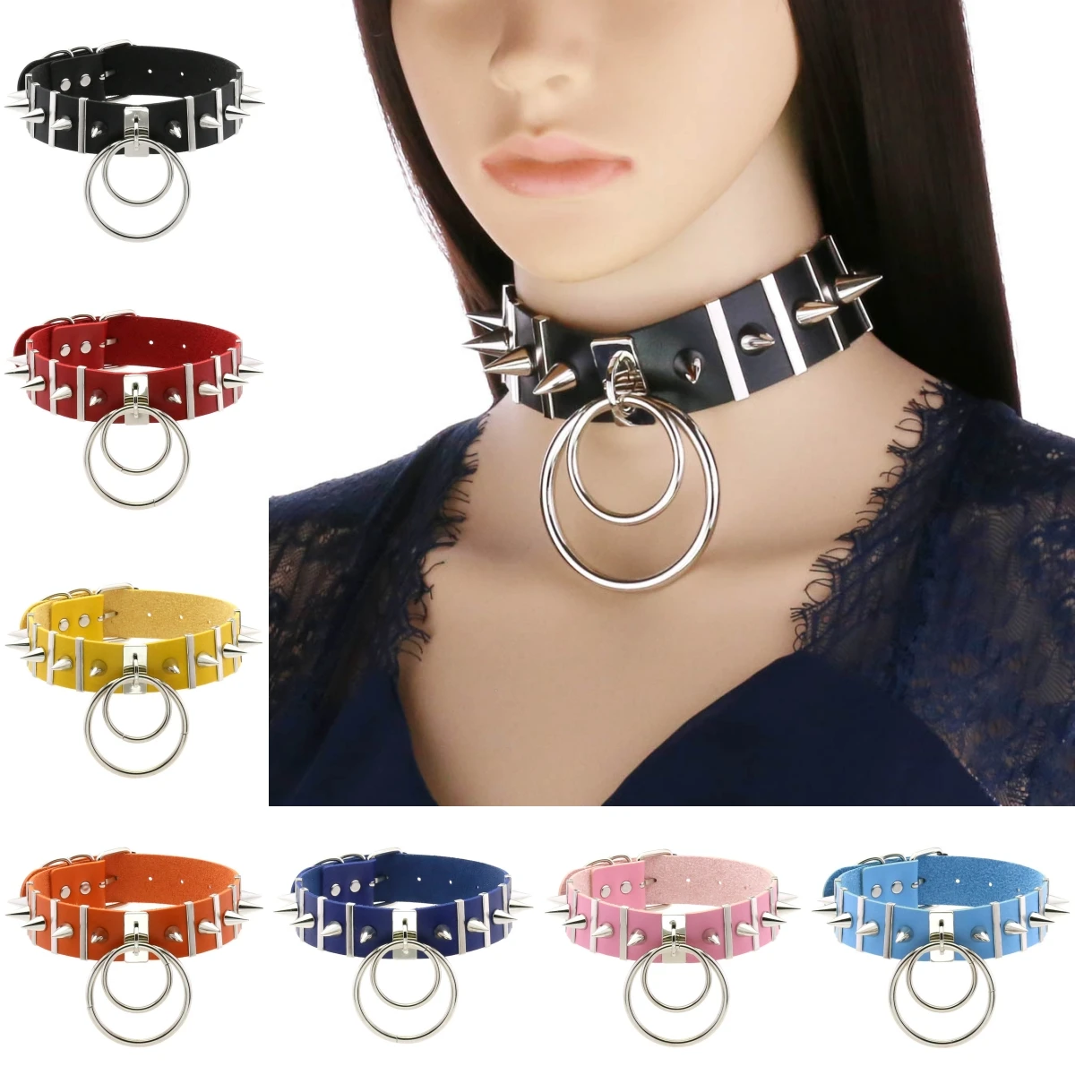 Nuovo Y2K Ragazze Donne Sexy Gotico Harajuku Chocker Collane Punk Cuore Rotondo Rivetti Bianco Goth Collana Girocollo Holloween Gioielli