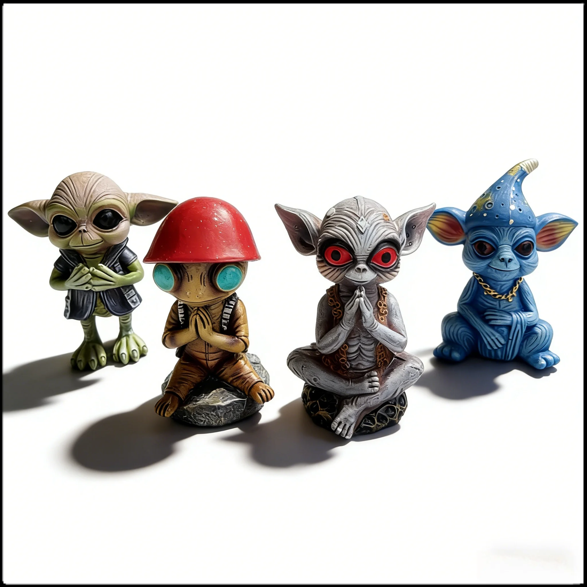 6 pezzi statua da giardino che medita sculture alieni, ornamento in resina alieno meditante, arredamento da giardino per interni ed esterni UFO