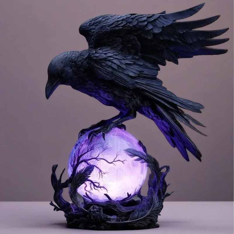 Lampada da tavolo con corvo nero al chiaro di luna del corvo gotico Luce notturna incandescente per centrotavola per feste Decorazioni per la casa Regalo per lei