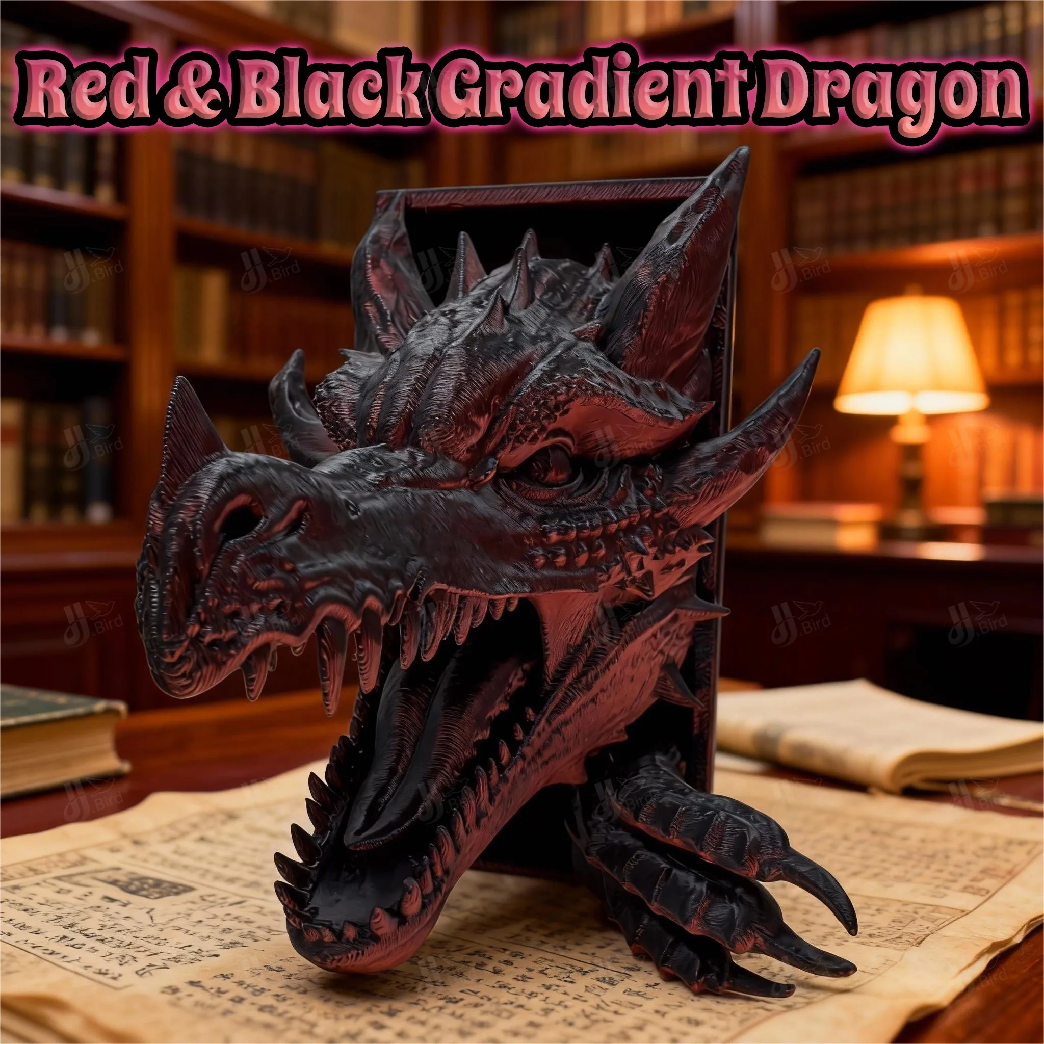 Figurina di testa di drago sfumata rossa e nera da 1 pezzo, adatta per esposizione desktop, libreria, ufficio e ingresso. Perfetto per il nuovo anno