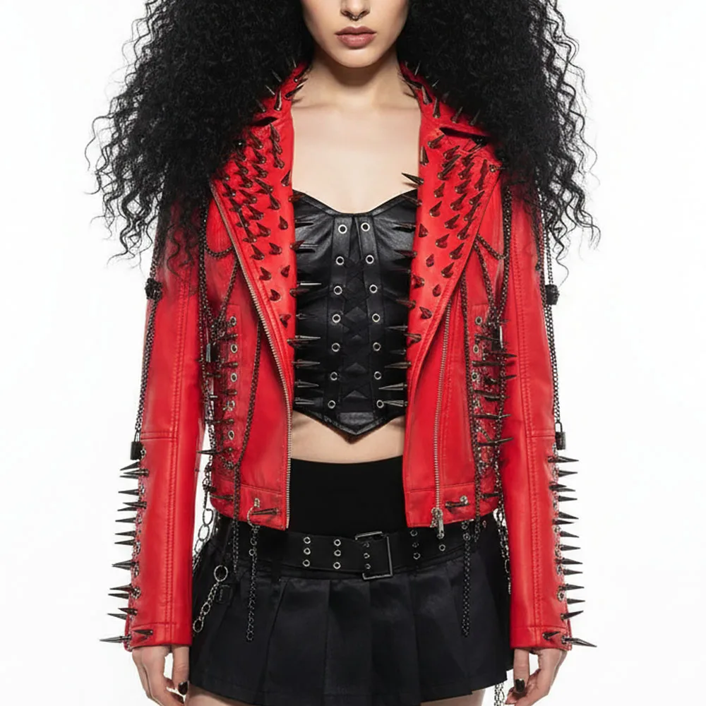 Giacca da donna in ecopelle con borchie e rivetti da motociclista, cappotto punk streetwear alla moda