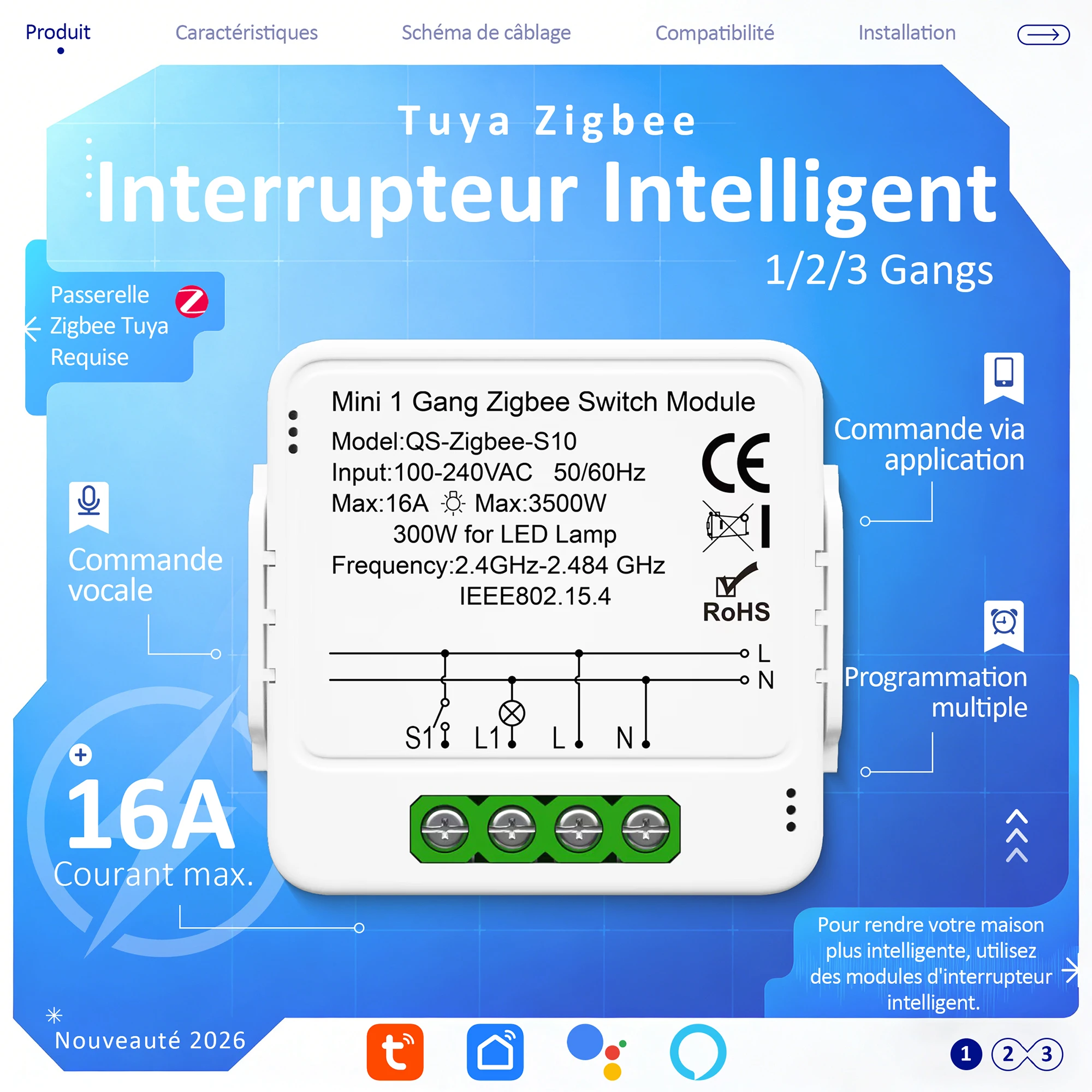 Modulo Interruttore Intelligente Tuya Zigbee 1-3 Gang Fai-da-te Mini Timer per Domotica Compatibile con Alexa Google Home Assistant