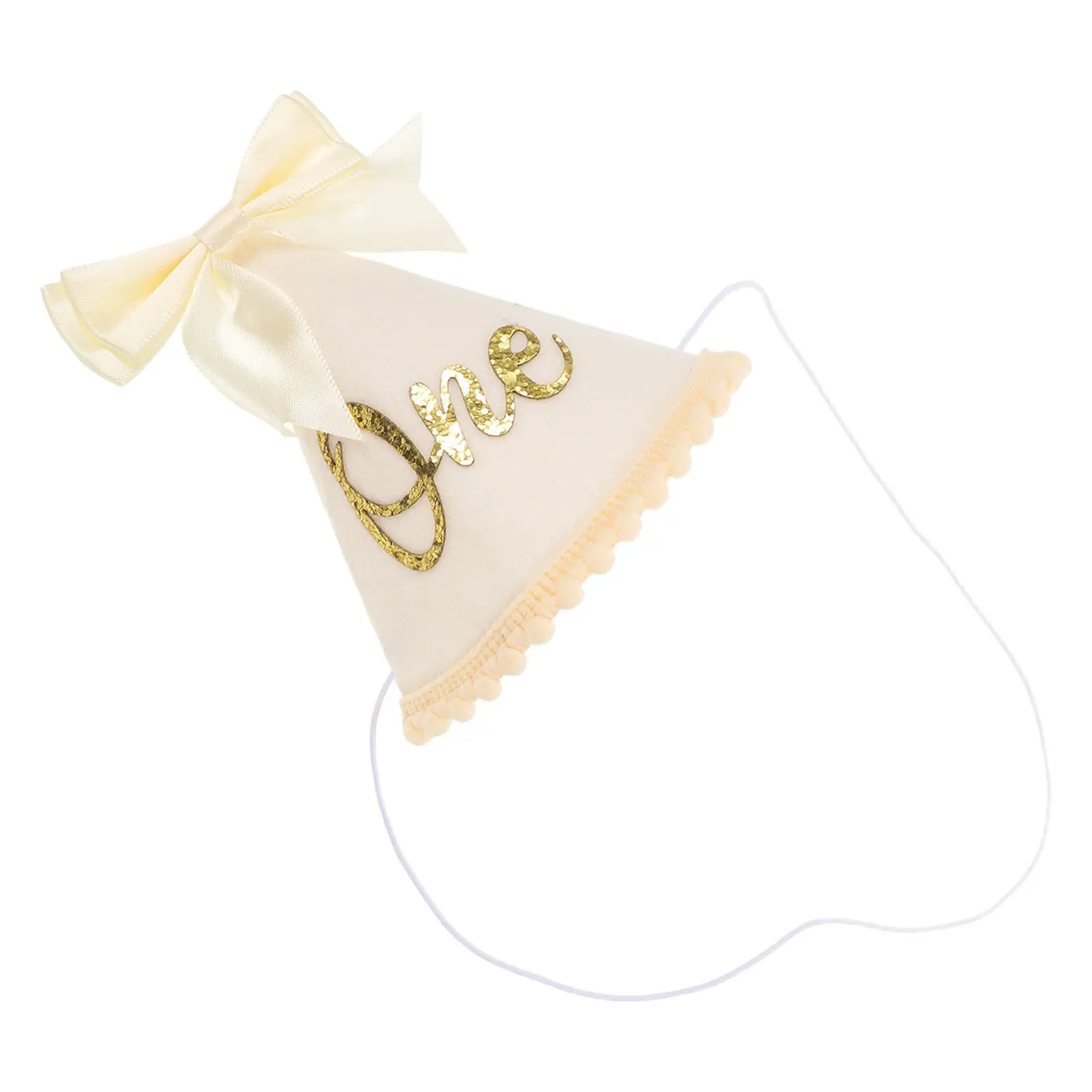 Cappello di Compleanno Piccolo: Corona in Feltro per Festa del Primo Anno con Fiocco - Accessorio per Foto - Cappello a Cono per Prima Festa di Compleanno