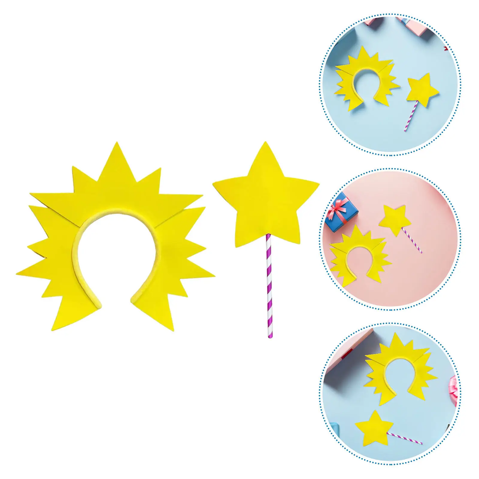 Set di 1 fascia per capelli con sole e bacchetta con stella, accessori per travestimenti da fata per ragazze e donne, kit per costume da principessa comodo ed elastico