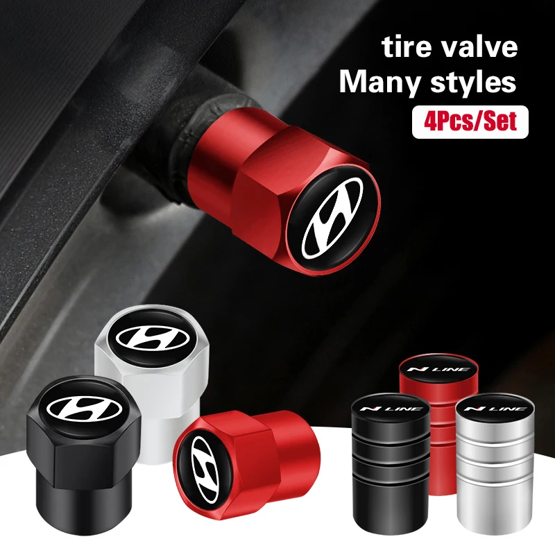 4 pezzi Hyundai Auto In Metallo Auto Tappi Valvola Della Gomma Accessori di Prevenzione Della Polvere Per Hyundai N-LINE Genesis I10 I20 I30 I40 IX20 IX35 Kona