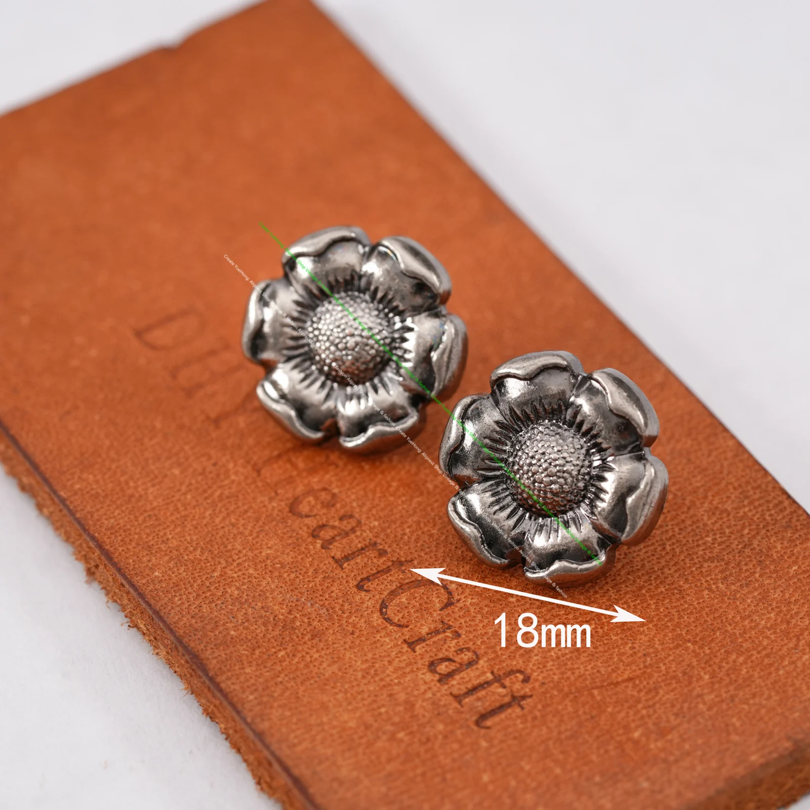 20 Pezzi Rivetti Vintage Argento 18mm con Incisione Floreale, Borchie Decorative per Cinture, Collari per Animali, Accessori in Pelle
