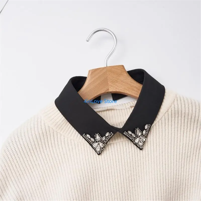 T4MD Elegante colletto staccabile tempestato per donna Chiusura posteriore regolabile Accessorio in poliestere da