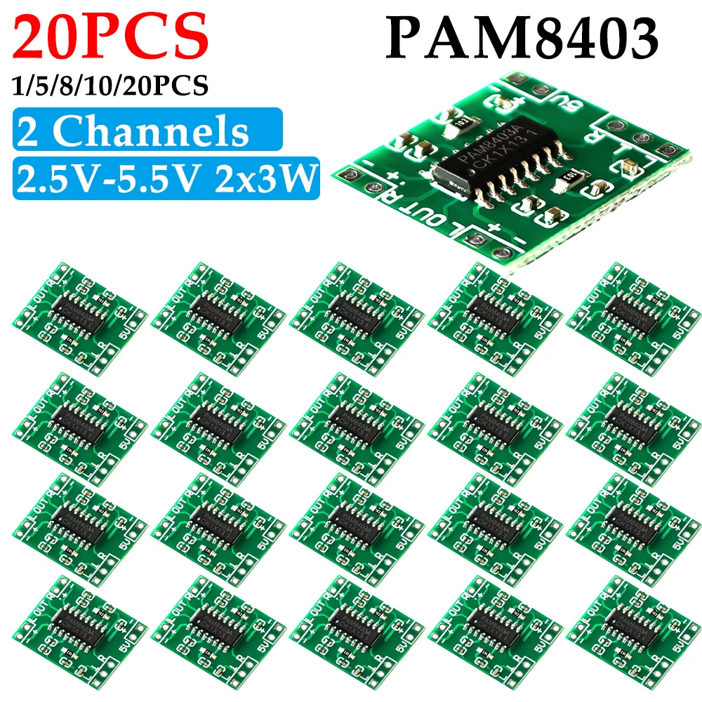 1-20PCS PAM8403 Mini scheda amplificatore di potenza modulo amplificatore Audio Stereo a 2 canali per alimentatore USB Arduino 2.5V-5.5V 2*3W