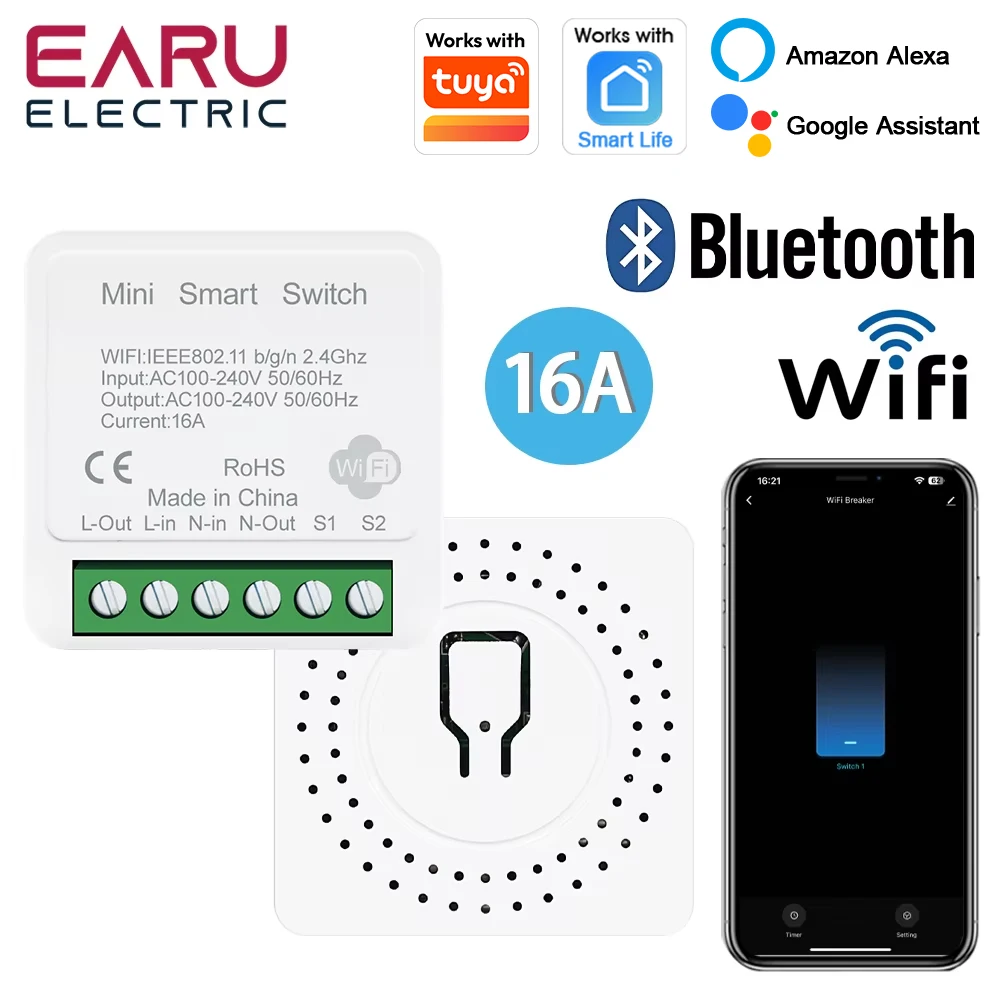 Tuya App 16A 2 vie fai da te Mini WiFi Smart Switch modulo interruttore timer relè telecomando vocale senza fili per Alexa Google Home