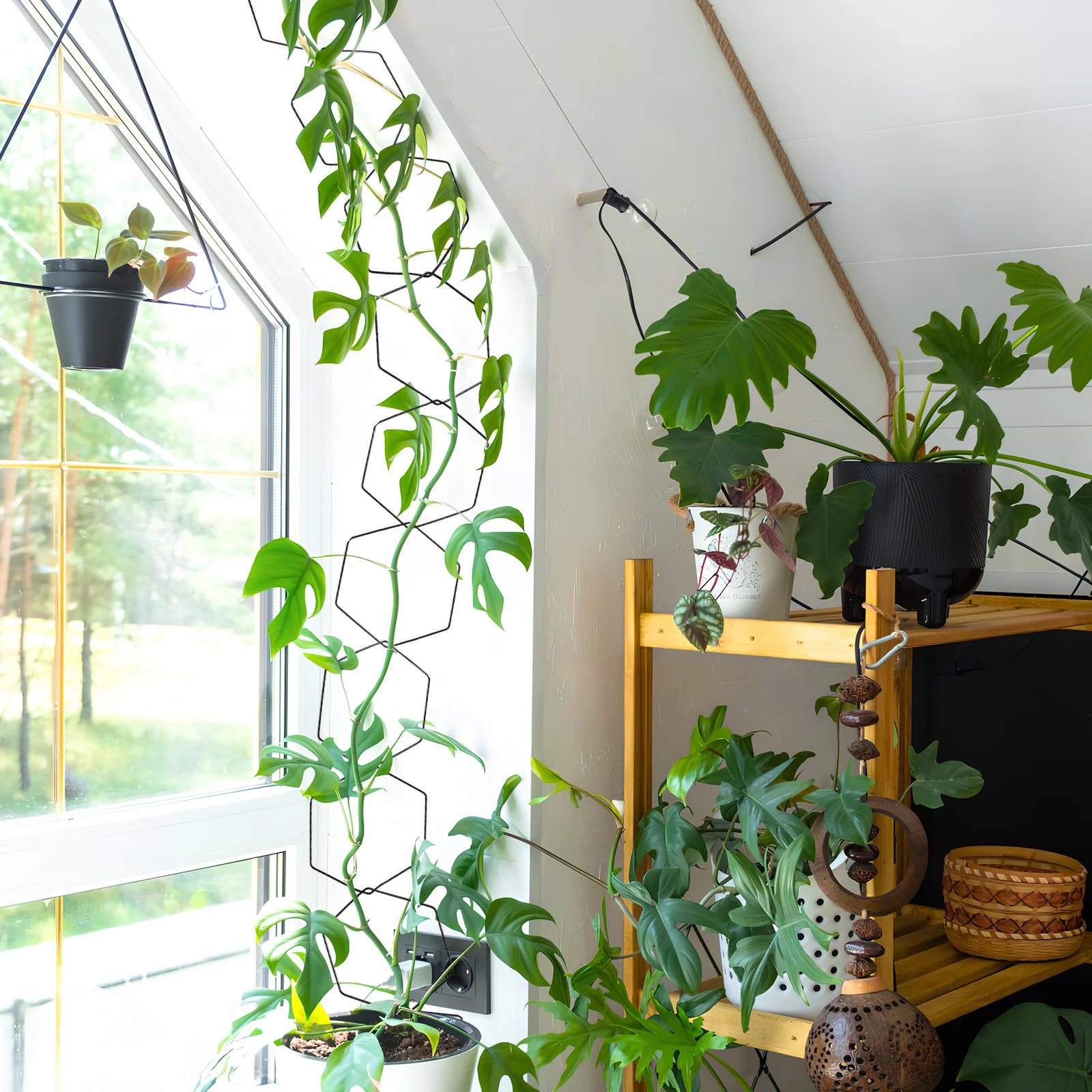 1 Set Catena per piante Traliccio Supporto per arrampicata in metallo per vasi da parete Giardino Crescita della vite Design regolabile Robusto quadro da giardino