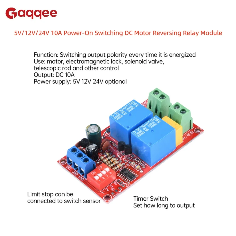 Modulo relè di inversione motore CC con commutazione di accensione 5 V/12 V/24 V 10 A per solenoidi, attuatori elettrici e motori