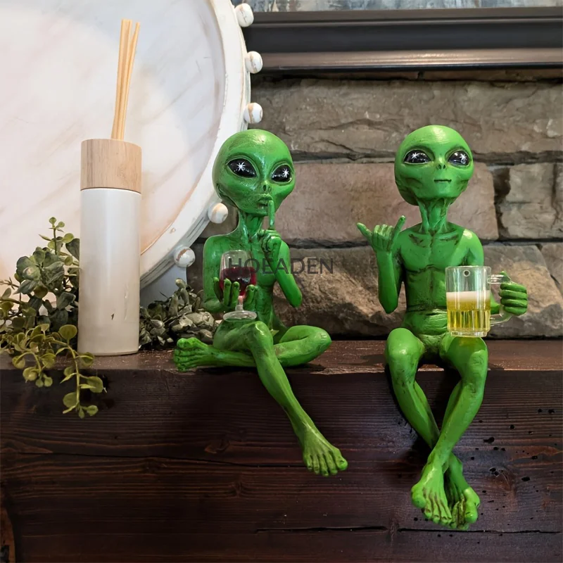 Divertente statua alieno scultura giardino paesaggistica cortile arte ornamento resina birra bere scultura alieno decorazione del desktop