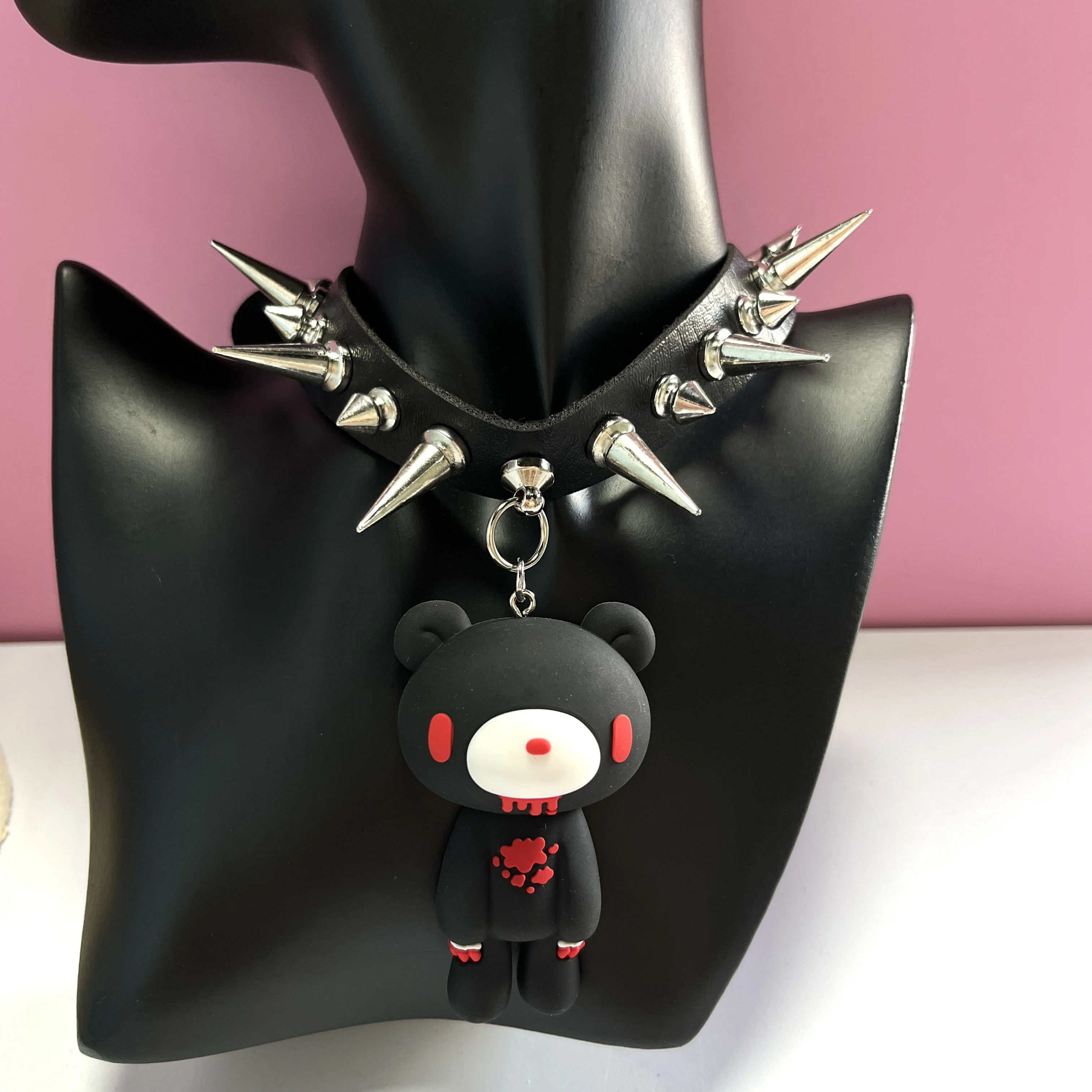 Collana girocollo con punta Dark Goth Y2K Collana con ciondolo orso nero horror Kawaii Collare in pelle PU per donna Grunge Alt Jewelry Party